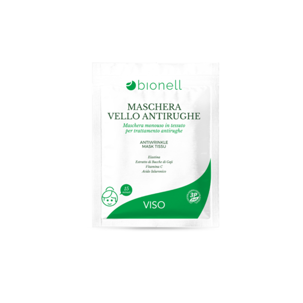 Maschera in viscosa biodegradabile 100% di origine naturale.