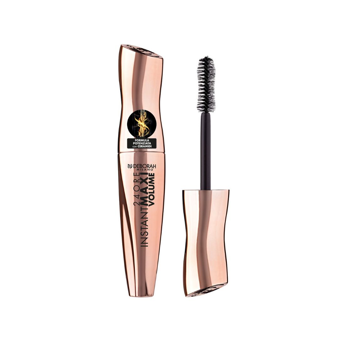 Il nuovo **24ORE INSTANT MAXI VOLUME MASCARA CON CERAMIDI** contiene una combinazione di ingredienti attivi che assicurano risultati sorprendenti: ciglia incredibilmente più folte, lunghe e curve.