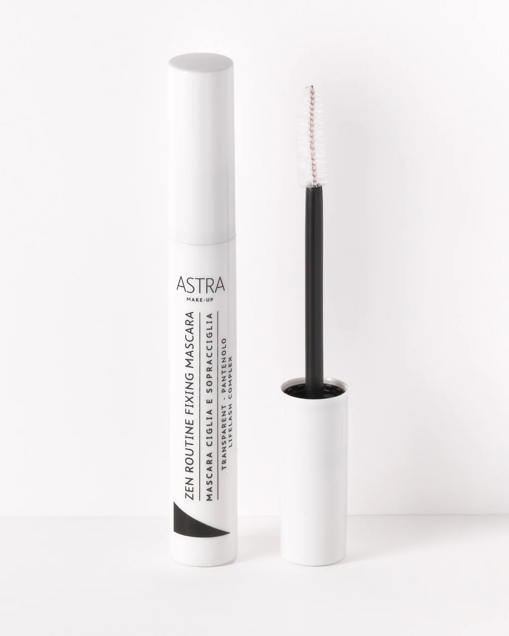 Zen Routine Fixing Mascara è un mascara per ciglia e sopracciglia in grado di combinare due diverse funzioni: applicato sulle sopracciglia, le fissa e le mantiene in posizione a lungo; sulle ciglia, enfatizza lo sguardo in modo naturale prendendosene cura.
