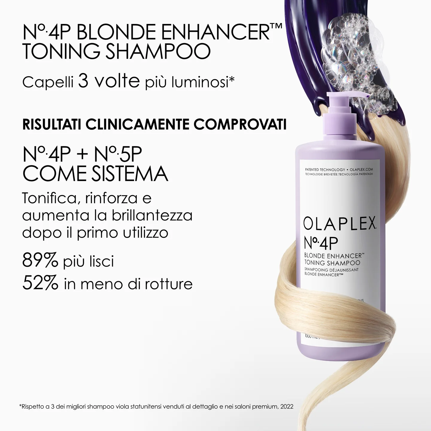 Il Nº.4P Blonde Enhancer Toning Shampoo, infuso con la brevettata OLAPLEX Bond