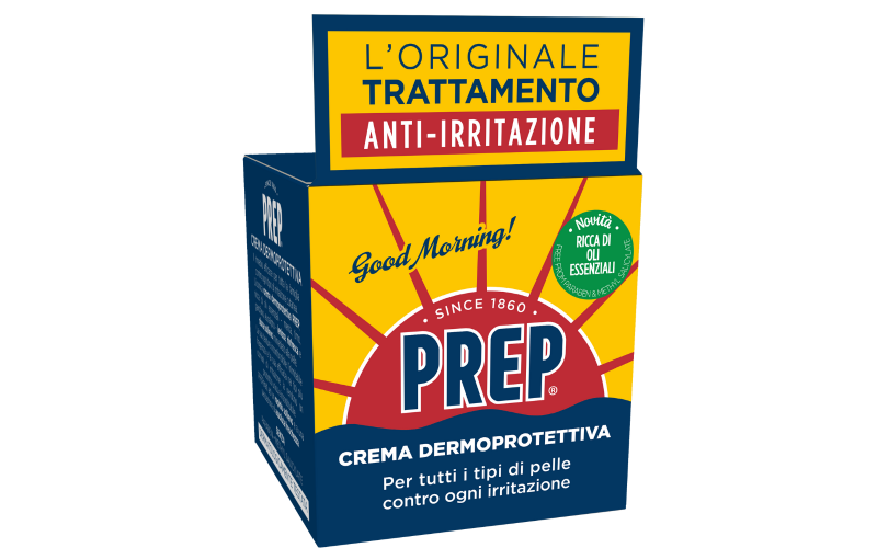 Ideale per Pre/post rasatura* novità – Post depilazione* Screpolature* Scottature solari* Punture di insetto e meduse* Piedi affaticati* Arrossamenti* novità – Trattamento rinfrescante* *Evitare l’utilizzo su cute lesa. Crema dermoprotettiva Il rimedio efficace per tutta la famiglia contro ogni tipo di irritazione cutanea. L’originale Crema Dermoprotettiva Prep, ricca di oli essenziali – menta, timo, garofano, eucalipto – lenisce, rinfresca e dona sollievo immediato alla pelle. La sua texture inconfondibile, l’inimitabile fragranza e la sua efficacia nei tipi più comuni di irritazione, la rendono un prodotto unico e insostituibile. Preparati a un rapido sollievo e a una duratura sensazione di assoluta freschezza. Senza Parabeni – Methyl salicylate Dermatologicamente testata Inquadra il QR code e scopri tutti gli utilizzi